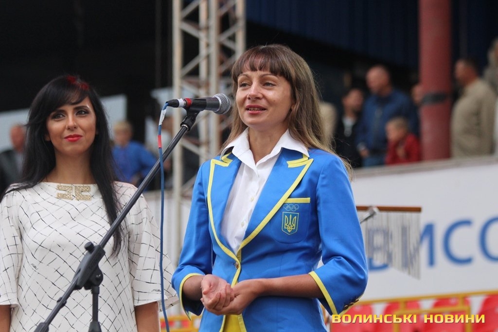 На сцену з вітальним словом вийшли олімпійські спортсмени Волині: Надія Боровська, Надія Миронюк, Олена Цьось.
