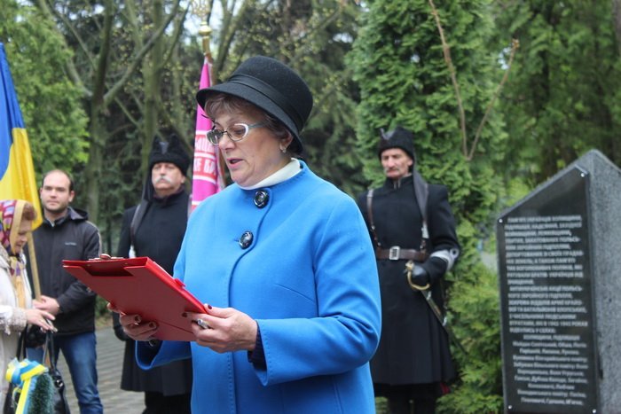 Потому розпочалося скорботне віче, під час якого Голова товариства «Холмщина» Микола Онуфрійчук розповів вражаючі факти про спалені села, численні жертви та жахливі вбивства мирного населення, якого зазнали українці навесні 1944 року.