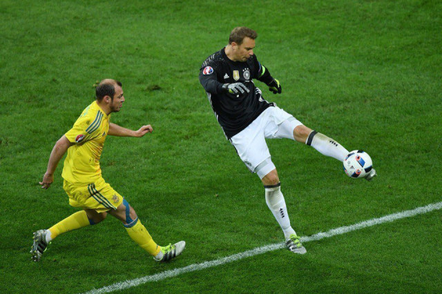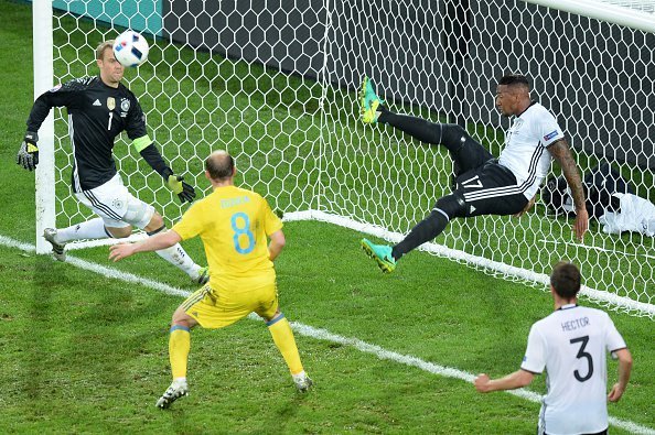 Фантастичний момент мав Євген Коноплянка, який пробивав уже повз голкіпера німців Нойєра, однак м'яч з пустих воріт вибив Боатенг.