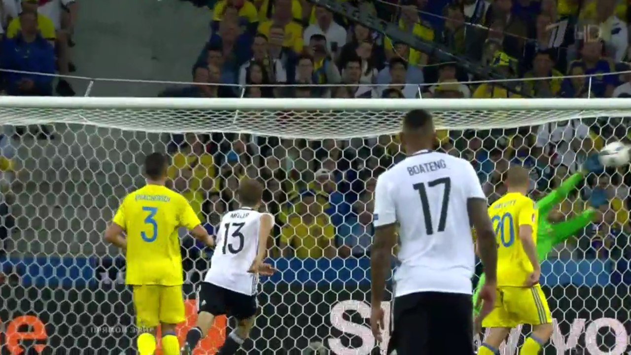 Збірна України відіграла свій перший матч на Євро-2016. Поєдинок відбувся на полі стадіону "П'єр Моруа" у Ліллі. Команда Михайла Фоменка поступилася чемпіонам світу, збірній Німеччини, з рахунком 2:0.Швайнштайгер забиває ГОЛ! 2:0 на користь німців.