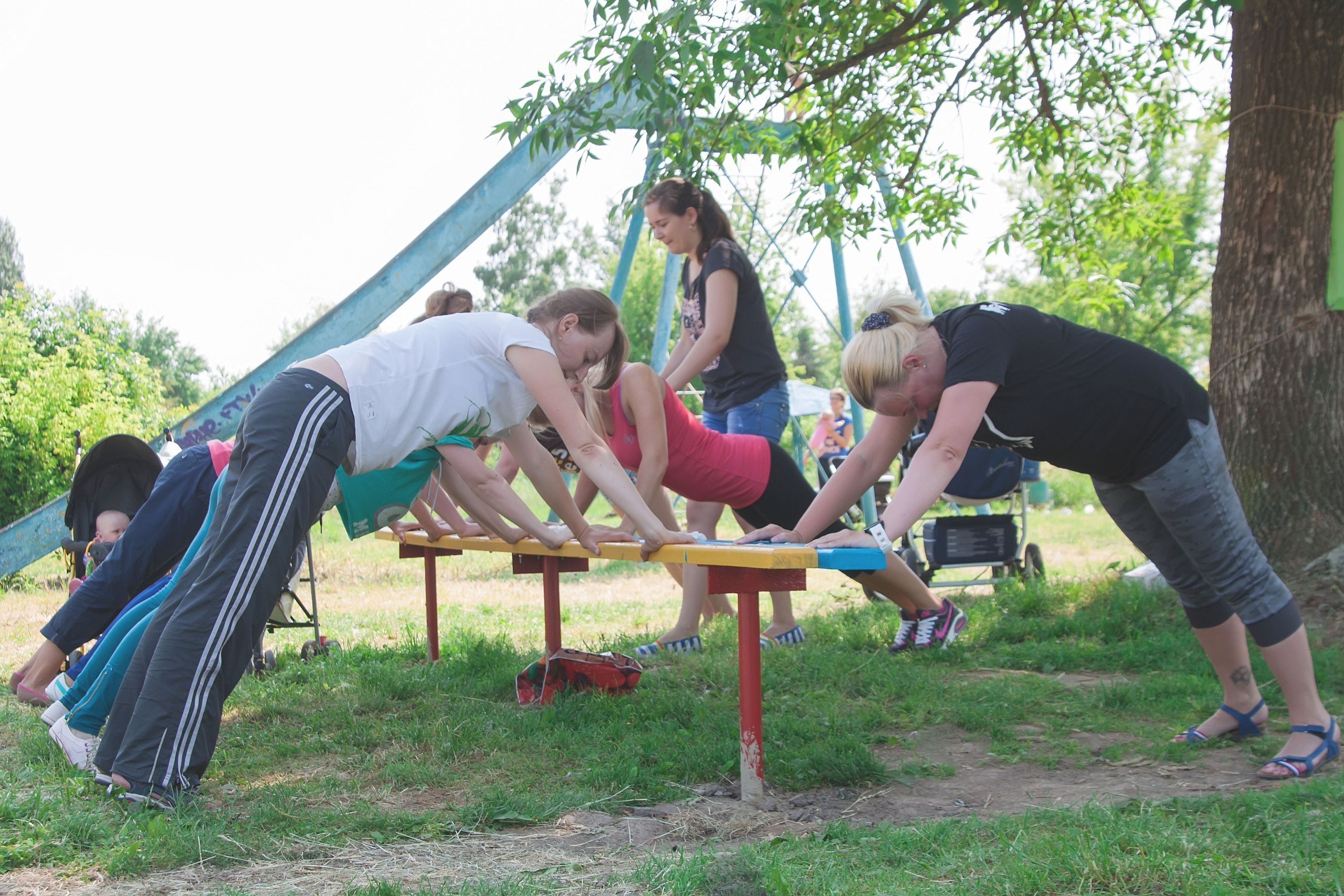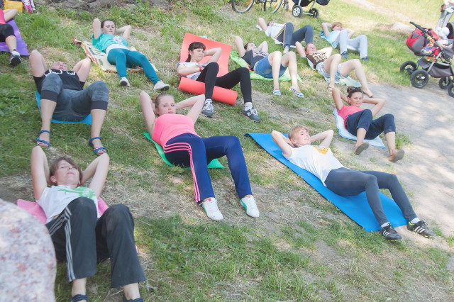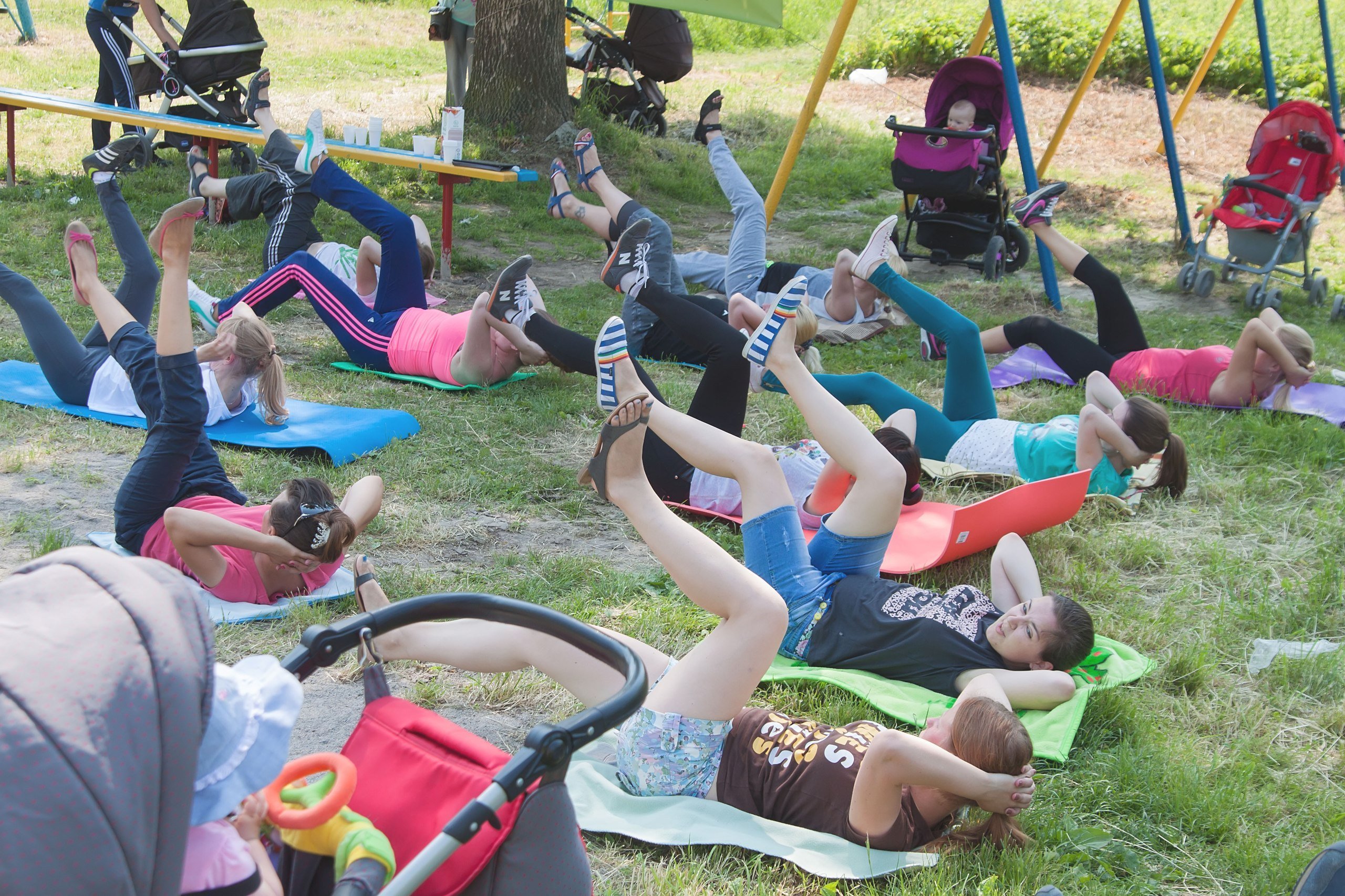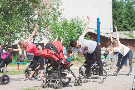 Так, в черговий раз ініціатором такого заходу стала Олена Чирук, тренер фітнес-залу «СпортЛайн». Олена і сама є молодою мамою, тому їй добре знайоме відчуття, коли вже час зайнятись власним здоров’ям та підтягнути м’язи, але малюка залишити вдома немає можливості.