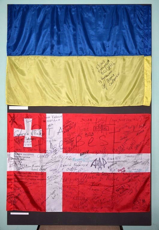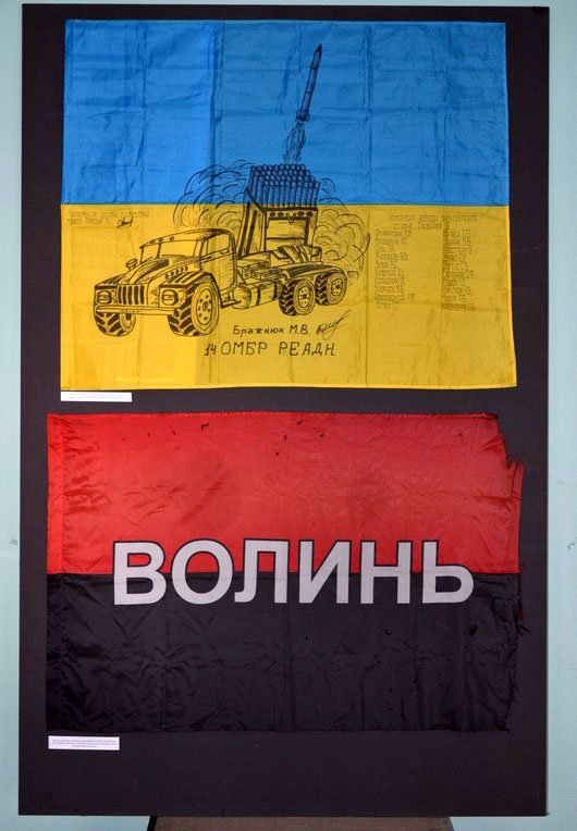 А саме: на виставці представили чотириметровий блакитно-жовтий прапор Народного Руху України, що використовувався на перших демократичних мітингах на початку 1990-х років, переданий Віктором Федосюком; прапор Волині з підписами добровольців з батальйону «Айдар»; прапор з автографом Героя України, народного депутата України, члена Парламентської Ради Європи, бійця «Айдару» Надії Савченко.