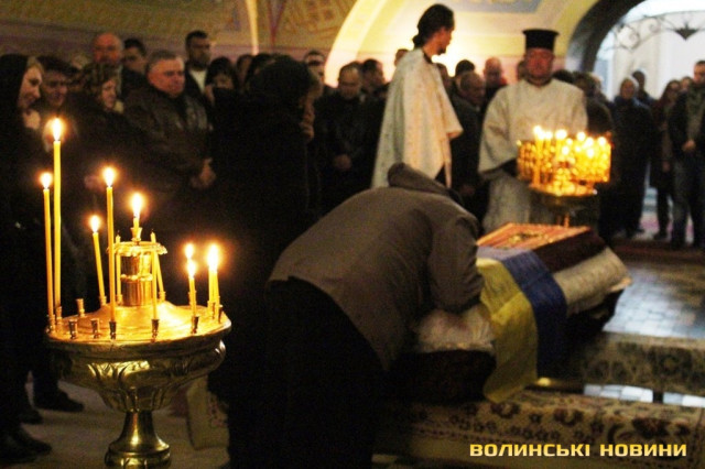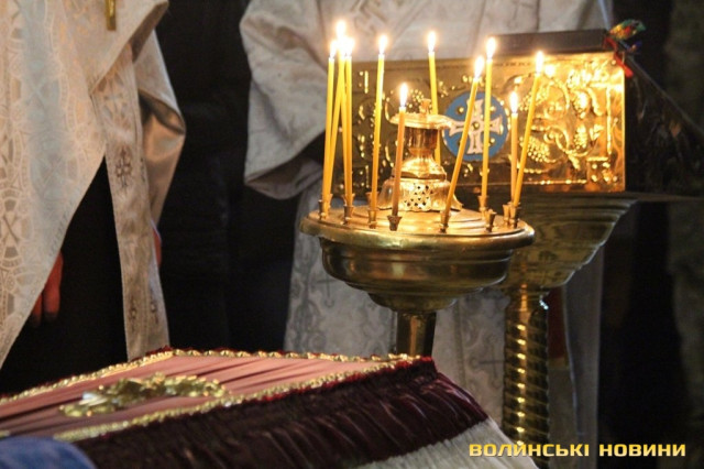 Так, тіло волинського захисника Вітчизни Віктора Чопка зустріли сьогодні, 29 березня, на Цуманському пості. Звідти привезли в Луцьк, у Свято-Троїцький кафедральний собор, де відспівали.