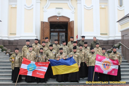 Так, священики з ГО «Військові капелани Волині» на чолі з її головою протоієреєм Михайлом Бучаком святковим строєм зайшли в приміщення Кафедральногособору, де відбулася спільна молитва.«Ми дякуємо Богу за те, що він дав нам можливість в ці непрості часи разом з українським народом, з українським військом стояти на передовій боротьби за наше майбутнє. Я хочу подякувати кожному з вас, адже це був ваш вибір. Кожен з вас мав можливість сказати «так» або «ні». Я щиро дякую, що ви відгукнулися на заклик України, на заклик Бога, який каже, що немає більшого подвигу, як віддати душу за ближнього свого. Дякуючи Богу, ми всі живі, але кожен з нас готовий разом з українськими воїнами стати боронити рідний край, наших близьких та рідних. Стоячи в цьому соборі, ми можемо подякувати нашому духовному батьку Митрополиту Михаїлу за ту турботу й опіку, яку він надає нам. Сподіваємося, що наша молитва допоможе в найближчому часі здобути мир після звільнення своєї землі», - звернувся до військових капеланів Михайло Бучак.Також громадська організація «Військові капелани Волині» отримала подяку від командира військової частини 1141 Національної гвардії України підполковника Гуртовського за душпастирську опіку, активну громадянську позицію та духовне виховання молоді.Окрім того, військові священики помолилися за дужі загиблих біля стенду Героїв Небесної Сотні та Героїв АТО. Небайдужі перехожі також зупинялися біля стенду, аби разом з капеланами помолитися за загиблих Героїв.«Те зерно, яке посіяне за незалежність України найкращими синами, дасть врожай в сотні разів більший, адже на їхньому подвигу сьогодні виховується нове покоління сучасної молоді, яке не знає рабства, яке хоче жити в незалежній Україні без духовної та політичної залежності від наших сусідів. Шлях здобуття незалежності триває 25 років і він тернистий. Ця війна – це зрілість нашої нації. Незалежно від того, чи ми розмовляємо українською, чи російською, насамперед ми служимо Богу та Україні, тому перемога буде за нами. Нехай пам’ять наших героїв спонукає нас до перемоги в незалежній Україні», - зазначив отець Володимир Присяжнюк.