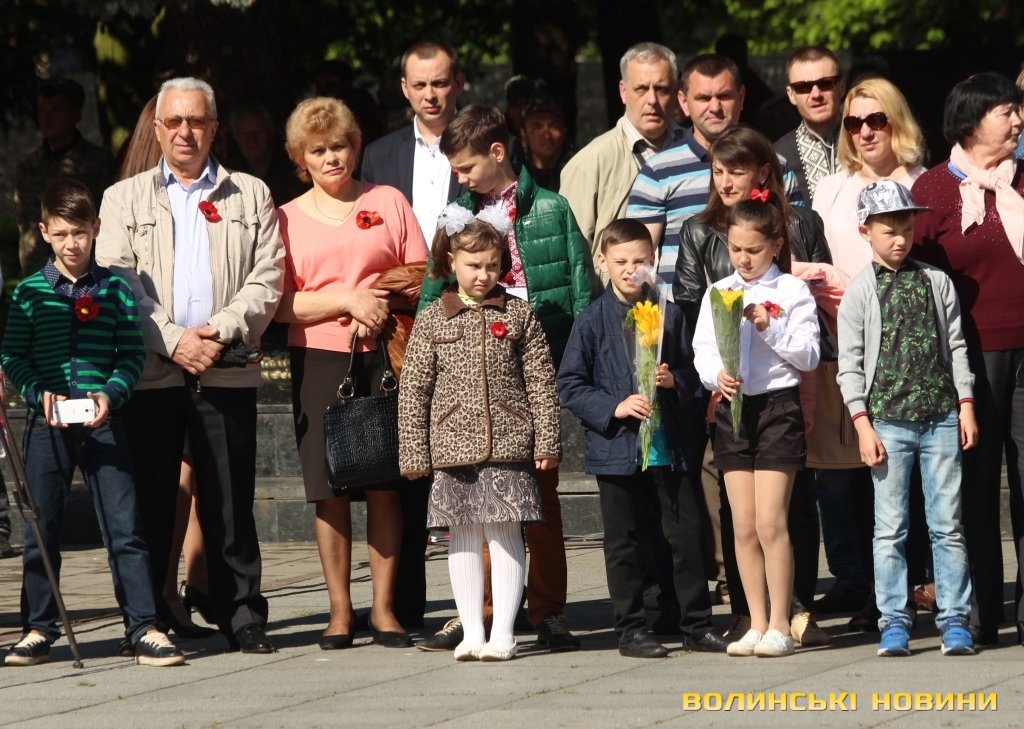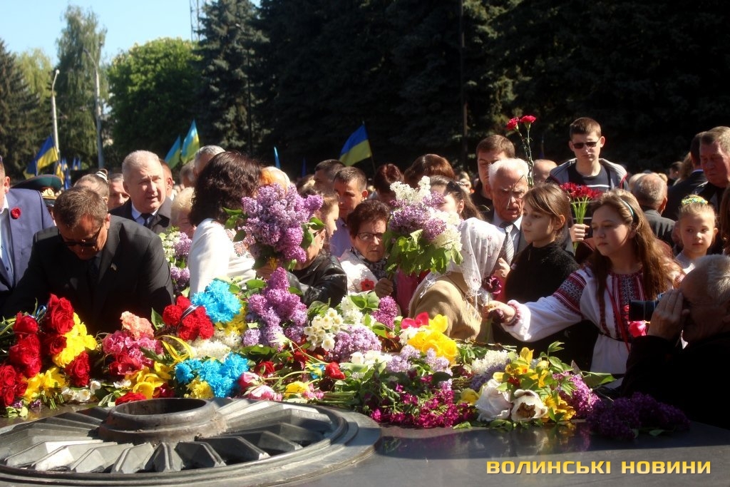 Голова Луцької міської організації інвалідів війни, Збройних сил України та учасників бойових дій Леонід Корчук зауважив, що 9 травня – особливе свято, суміш радості і печалі, пов’язаних зі спогадами про буремні роки війни. З його слів, подвиг полеглих є еталоном служіння ідеалам справедливості і добра.