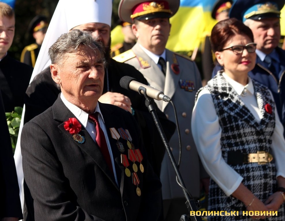 Голова братства ветеранів ОУН-УПА Волинського краю імені полковника Клима Савура Богдан Вівчарик наголосив, що бездарність тогочасного керівництва породило криваву бійню та братовбивчий конфлікт. З його слів, у своїй державі українці тепер мають право говорити правду про те, що насправді відбувалося. За українську незалежність у ті буремні часи віддавали життя не лише радянські воїни, а й українські повстанці, які ще довгі роки після переможного 1945-го боролися з тими, кого вважали ворогами України. Це було історичною трагедією народу, який століттями виборював свободу. Радянська тоталітарна система замовчувала факти жертовної боротьби воїнів УПА на двох фронтах. Так, він нагадав, що 8 вересня 1943 року у Новому Загорові 44 повстанці чоти Берези розпочали нерівний бій проти набагато чисельної німецької жандармерії та роти донських козаків, які «заблукали» на далекому українському Поліссі. З весни до осені 1943 року проіснувала Колківська республіка – острівець майбутньої вільної української держави, де не було ані фашистів, ані комуністів. Богдан Вівчарик зазначив, що війни завжди розв’язують політики, а розплачується за них народ життям кращих синів і дочок.