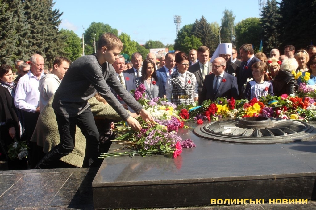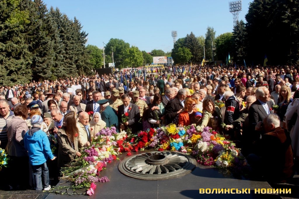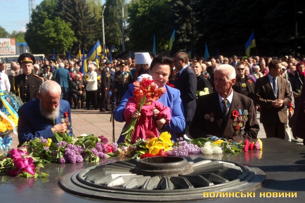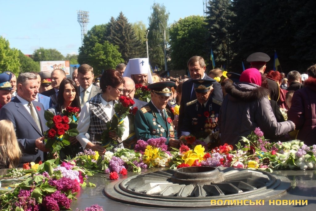 Пам'ять про полеглих та вшанування тих, хто вижив у горнилі найстрашнішої війни відзначили у Луцьку. Цьогоріч захід відбувся без промов високопосадовців, ані голова ОДА Володимир Гунчик, ані Луцький міський голова Микола Романюк, ні секретар Луцької міськради Юлія Вусенко не виступили перед присутніми.