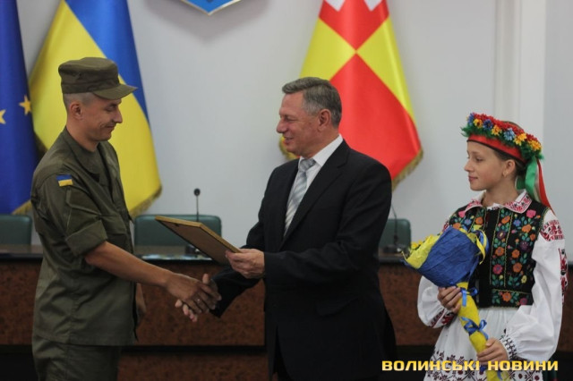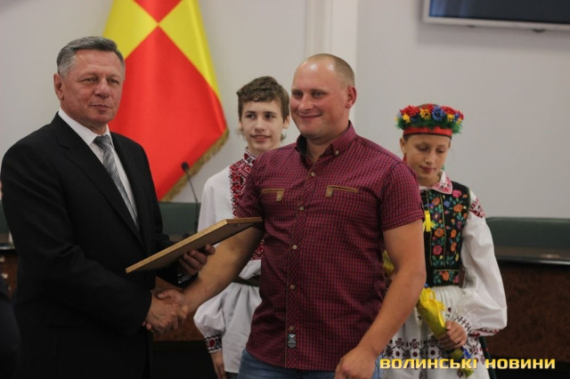 Серед інших, за вагомий особистий внесок в забезпеченні суверенітету та територіальної цілісності держави, мужність та героїзм, проявлений під час порятунку життя лучанина Миколи Савчука в зоні АТО, нагородили почесною грамотою учасника бойових дій Володимира Кислюка.За високий професіоналізм, мужність та професійне виконання службових обов’язків нагородили капітана юстиції, бійця військової частини 1141 Андрія Сало.За особистий вагомий внесок у боротьбі з проросійськими окупантами на сході України оголосили подяку інваліду першої групи Миколі Савчуку, життя якого врятував Володимир Кислюк.За професіоналізм під час перевезенні дітей на відпочинок у Луцьк із зони АТО, відзначили перевізника «Луцькекспрес».