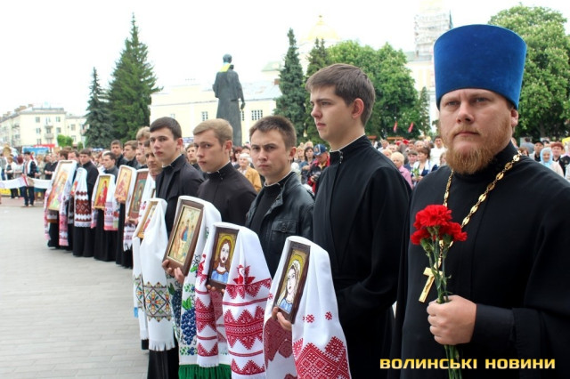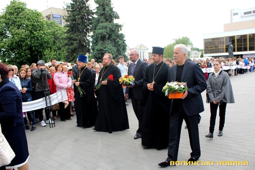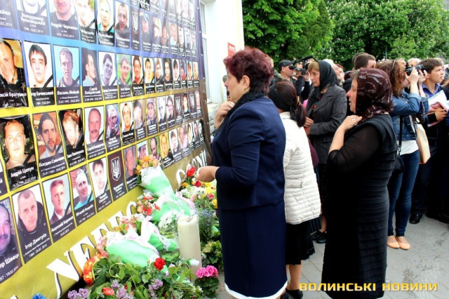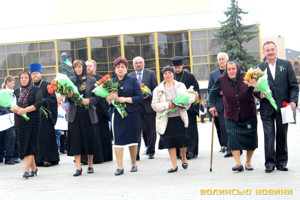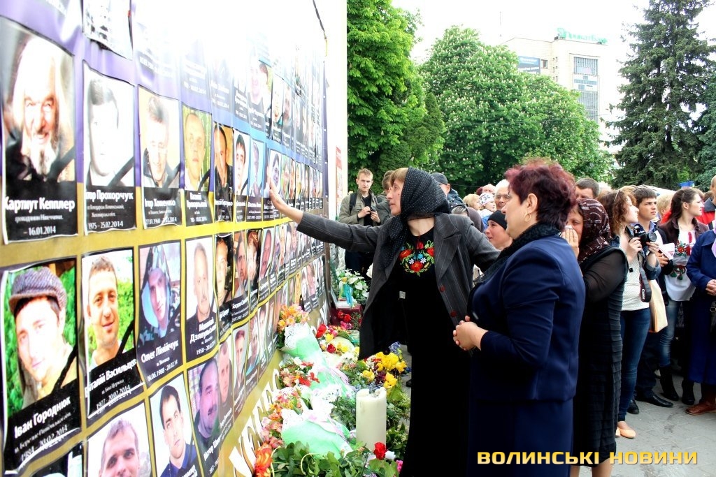 Згадати тих, хто, рятуючи Україну, відійшов у вічність, зібралися сотні лучан. Були присутні матері п’яти волинян-героїв Небесної Сотні: мешканка Нововолинська Марія Байдовська, мешканка села Деревок Любешівського району Світлана Гриневич, лучанка Єлизавета Мойсей, мешканка села Залісоче Ківерцівського району Ірина Тарасюк, мешканка села Голишів Луцького району Меланія Хом’як.