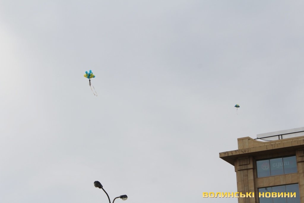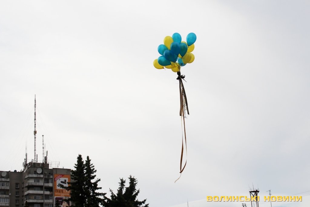Квіти до стіни героїв Небесної Сотні поклали матері, представники міської та обласної влади та духовенства. Наприкінці у небо випустили синьо-жовті кульки за кількістю прожитих героями років.