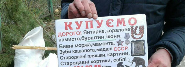 В тексті оголошення додалося, що у лучан "дорого куплять бурштин, намисто з нього, ікони".