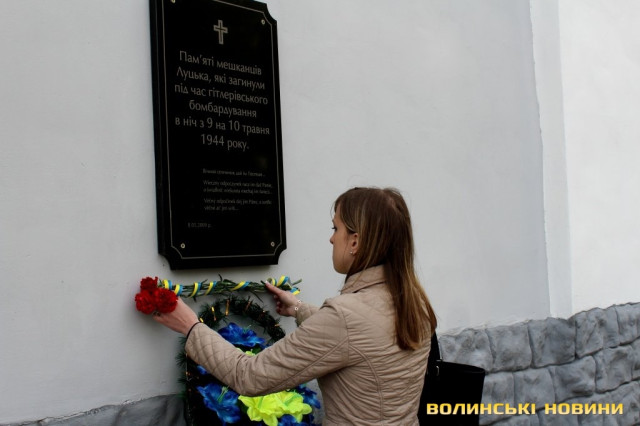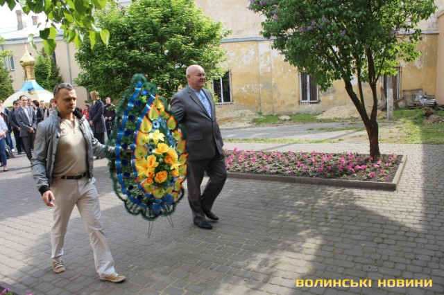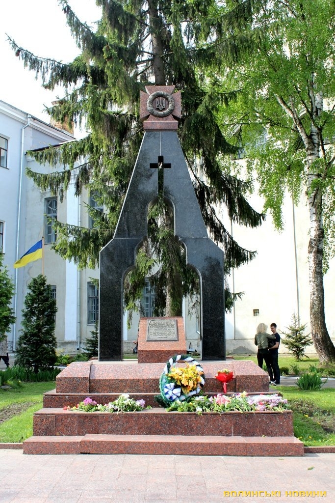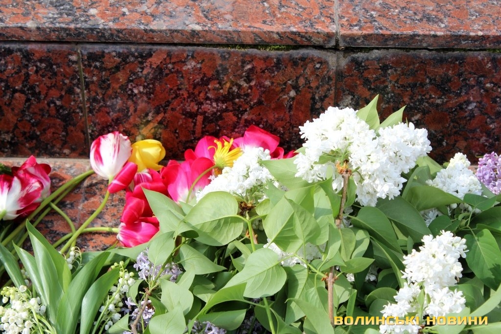 Квіти поклали до монументу жертвам тоталітарних режимів, меморіальної дошки на честь мешканців Луцька, які загинули під час гітлерівського бомбардування та на місці розстрілу в’язнів Луцької тюрми.