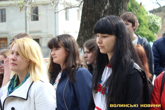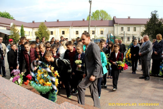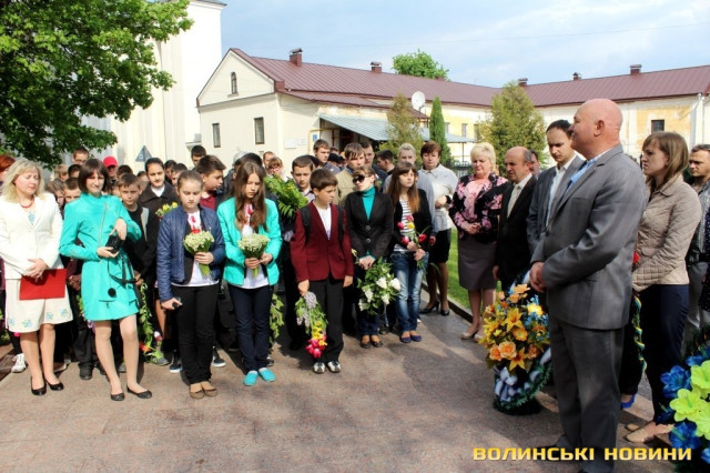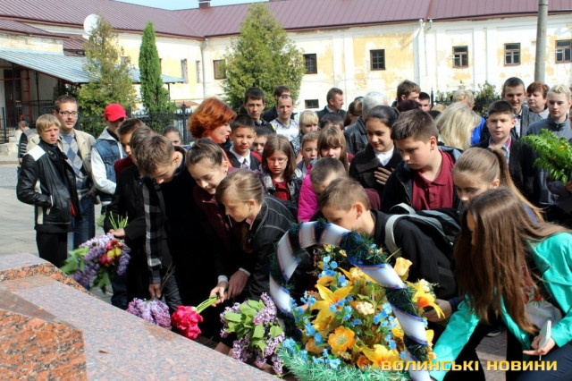 «Пам’ятник, біля якого ми стоїмо, побудований на честь загиблих під час розстрілів у Луцькій тюрмі у 2-3 день війни, коли розстріляли понад дві тисячі людей. Зараз ми перебуваємо у такому неспокійному часі, коли Російська Федерація продовжує агресію у східних та південних областях, де гинуть люди. Ми переживаємо важкий час, але будемо оптимістами – ми повинні працювати, жити та розбудовувати нашу незалежну Україну. Ми повинні пам’ятати часи, коли люди віддали за Перемогу найцінніше – життя та завжди їх вшановувати», - звернувся до молоді директор навчального закладу Ігор Корчук.