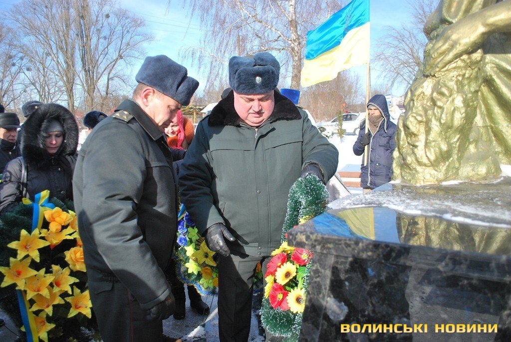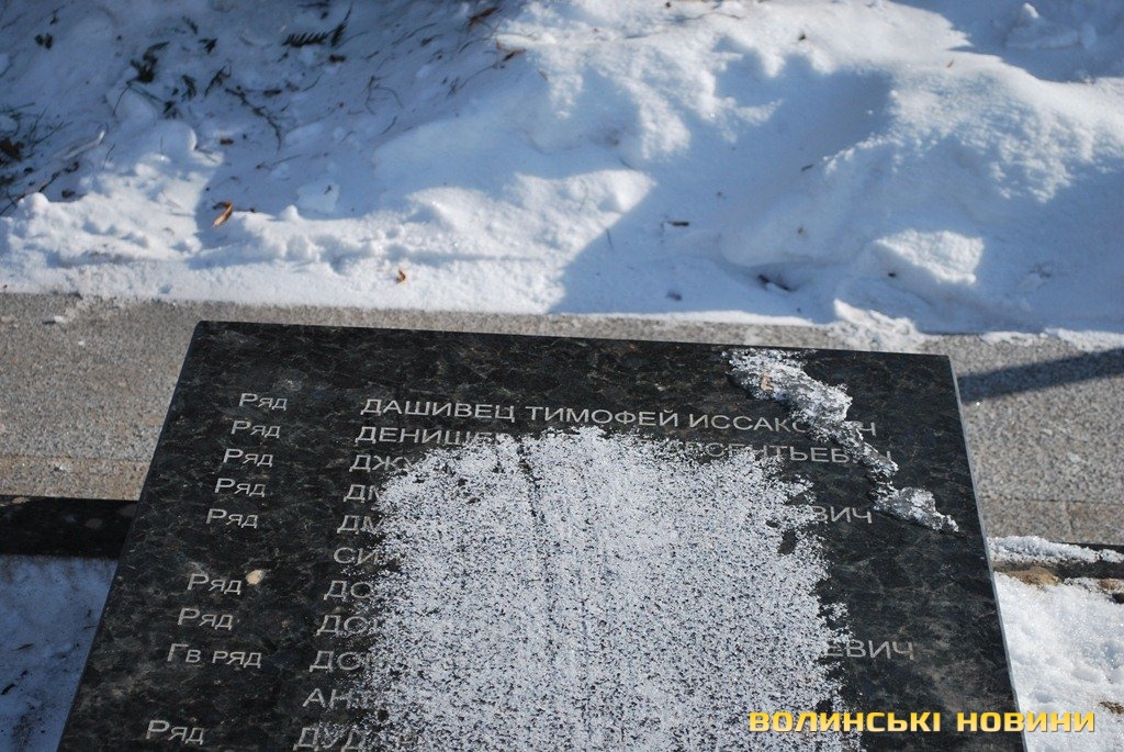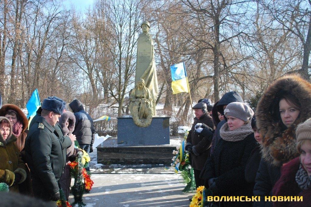 У всіх трьох місцях захід відбувся одночасно о 12 годині. Наймасовіший захід відбувся біля братської могили, яка розташована поблизу Теремнівських ставків. Попри морозну погоду, кілька десятків лучан прийшли віддати шану воїнам, які загинули в боях за Луцьк. Окрім покладання квітів там відбулася панахида.