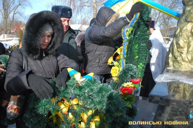 Після того, як загиблих відспівали священики, до обеліску поклали вінки від міської ради, військкомату, будинку культури і просто небайдужих людей.