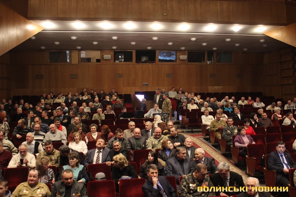 У Волинському обласному академічному музично-драматичному театрі імені Тараса Шевченка розпочали захід із Державного Гімну України та хвилини мовчання, аби віддати шану загиблим в Афганістані воїнам.