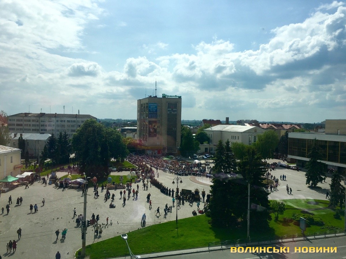 Тисячі лучан вишикувалися, утворивши єдиний довгий рушник: від Театрального майдану вздовж вулиці Лесі Українки.