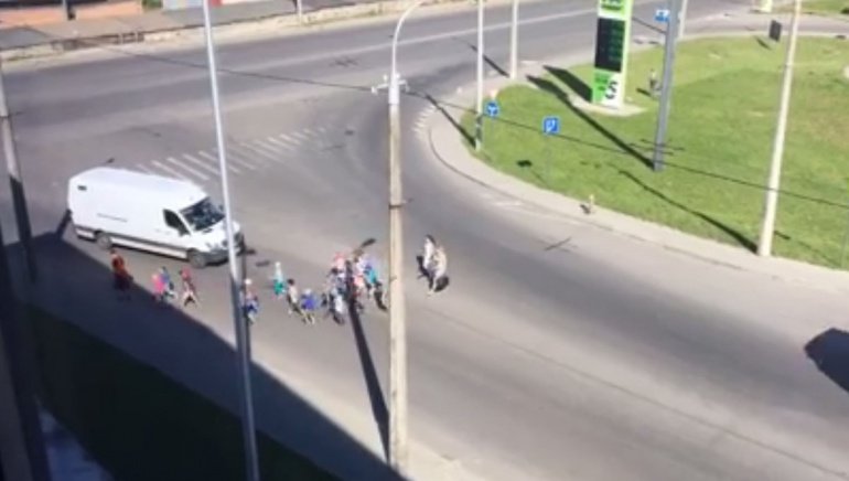 «Нас дуже стурбувало сьогоднішнє відео, оприлюднене користувчкою Фейсбук Liliya Danilyuk: на відео видно, як вихователька переводить кілька десятків дітей через дорогу, причому до найближчого пішохідного переходу – приблизно 2-3 метри! Діти просто перебігають через дорогу в хаотичному порядку, а водії, тим часом, терпляче чекають, поки ті перетнуть смугу. Це неприпустимо!», - написали патрульні.