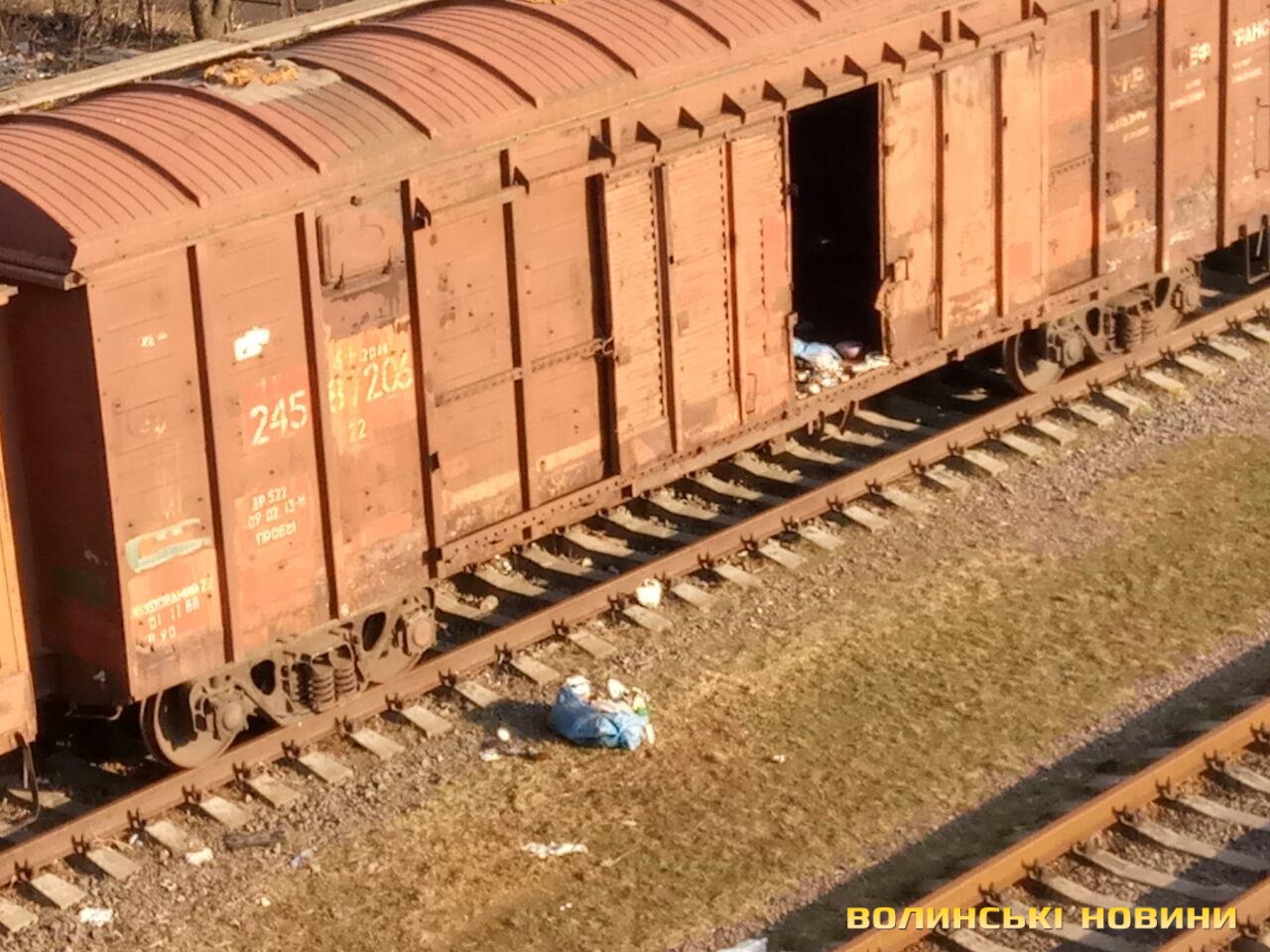 Лучани розповіли, що невідомі люди викидають сміття на землю з товарного вагону, який стоїть неподалік мосту на проспекті Перемоги.