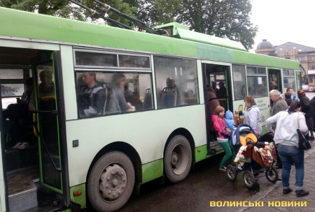 Маршрутом № 2 у Луцьку рухався тролейбус, в салоні якого стирчали електричні дроти.