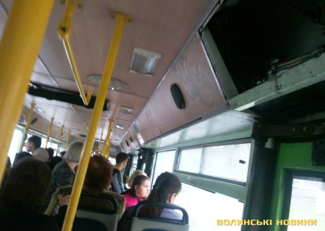 Луцьком їздить тролейбус, у салоні якого стирчать електричні дроти