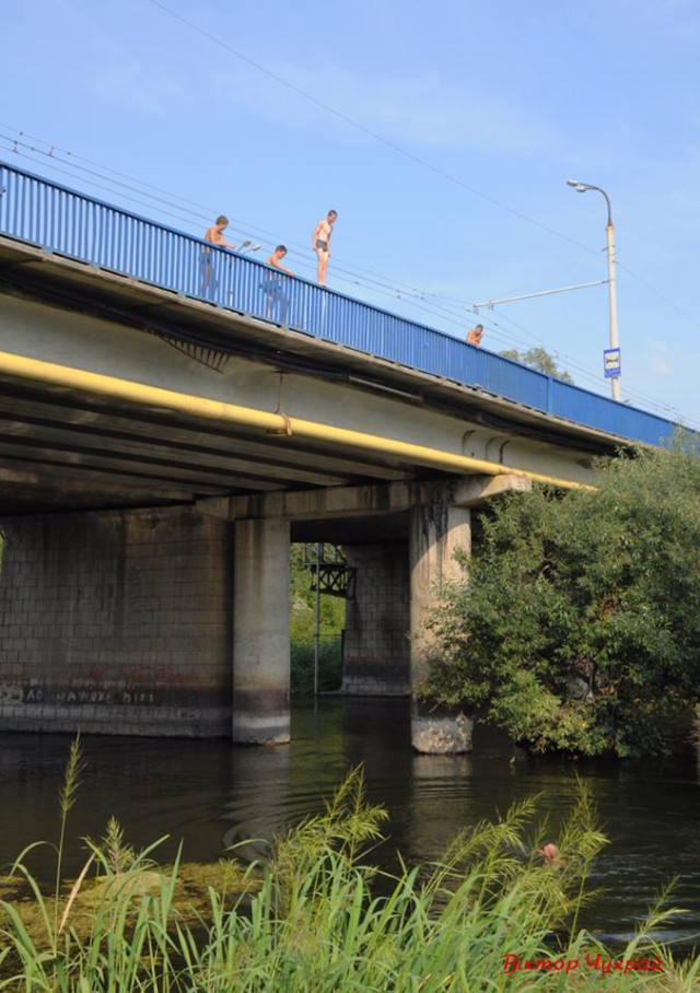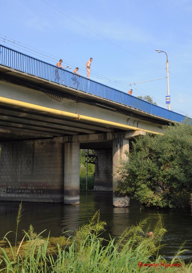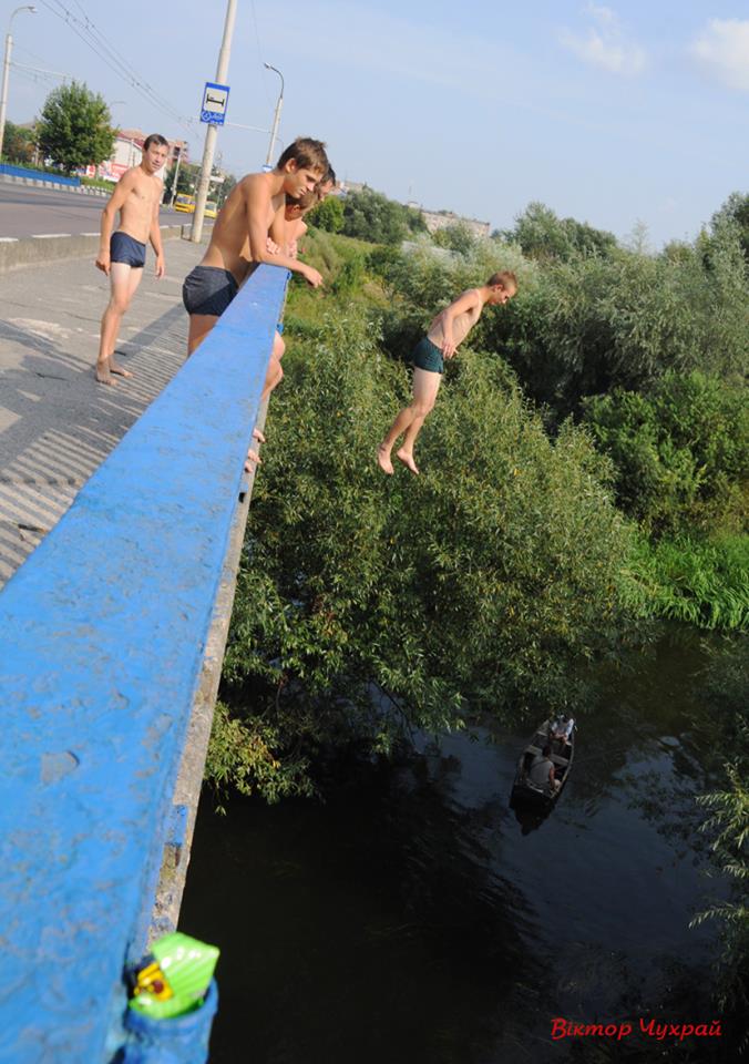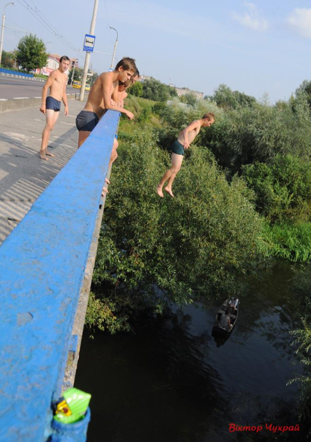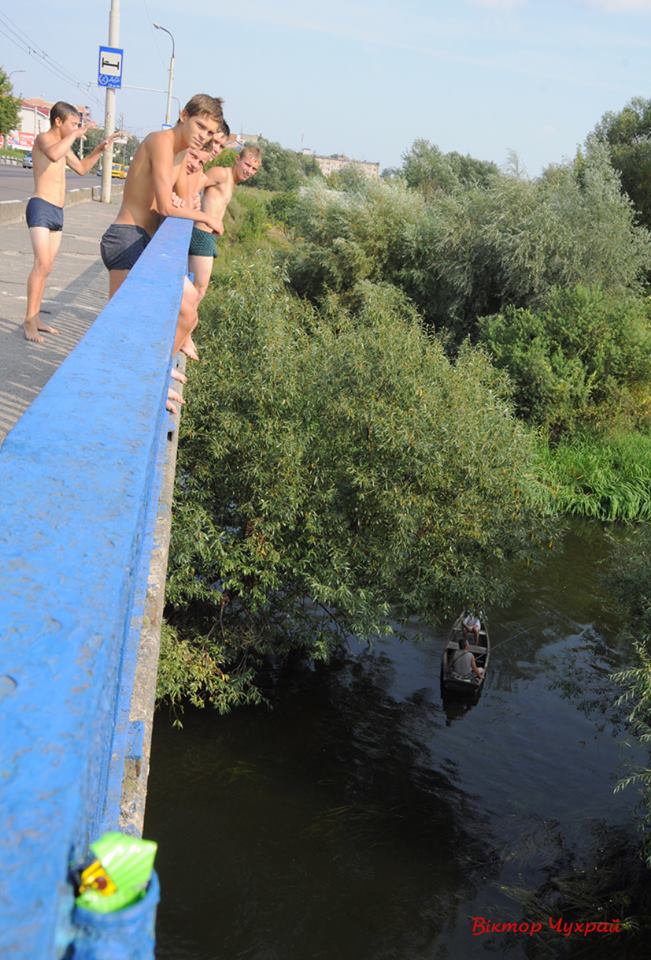 У Луцьку з мосту через річку Стир стрибали чоловіки. І робили вони це із задоволенням.