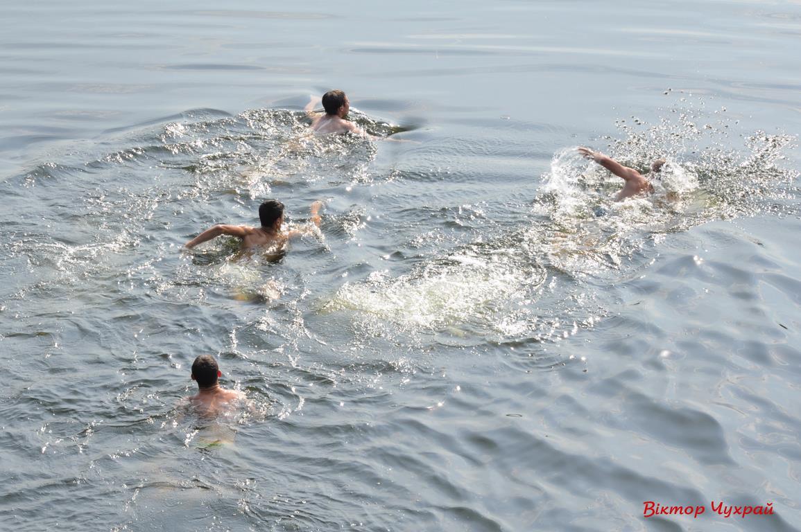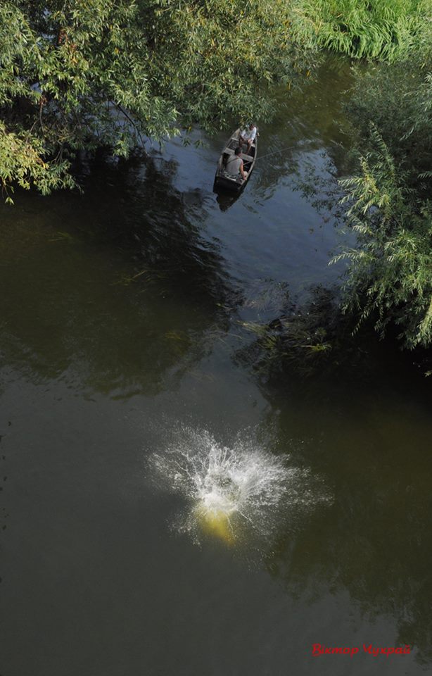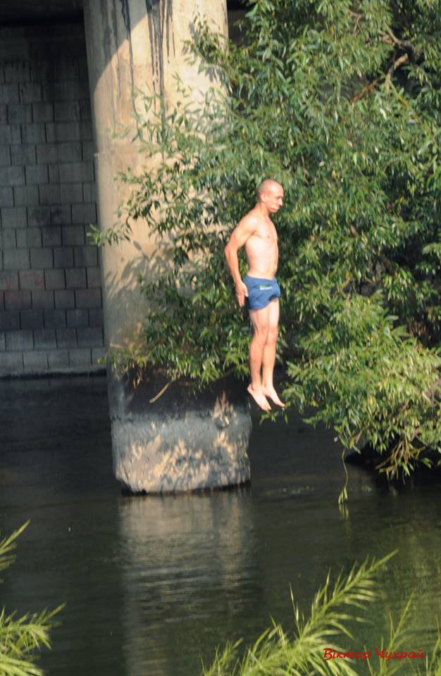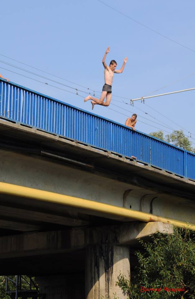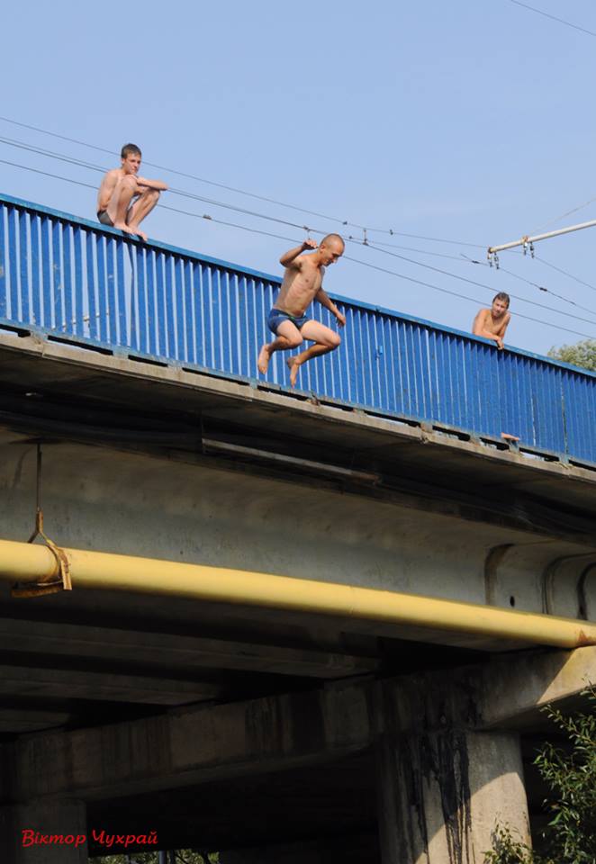 У Луцьку з мосту через річку Стир стрибали чоловіки. І робили вони це із задоволенням.