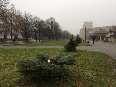 У Луцьку з території дитячого містечка вкрали ялинку. Фото