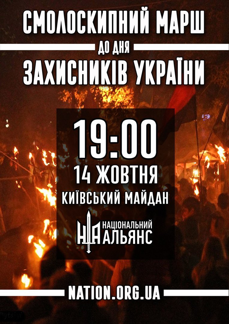Щороку, 14 жовтня - в День захисника України та День створення Української повстанської армії, ГО «ВМР «Національний Альянс» влаштовує смолоскипну ходу для вшанування Героїв України. Цей рік не стане виключенням.