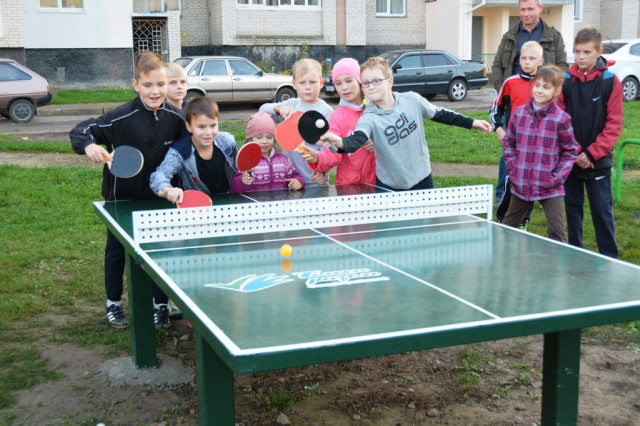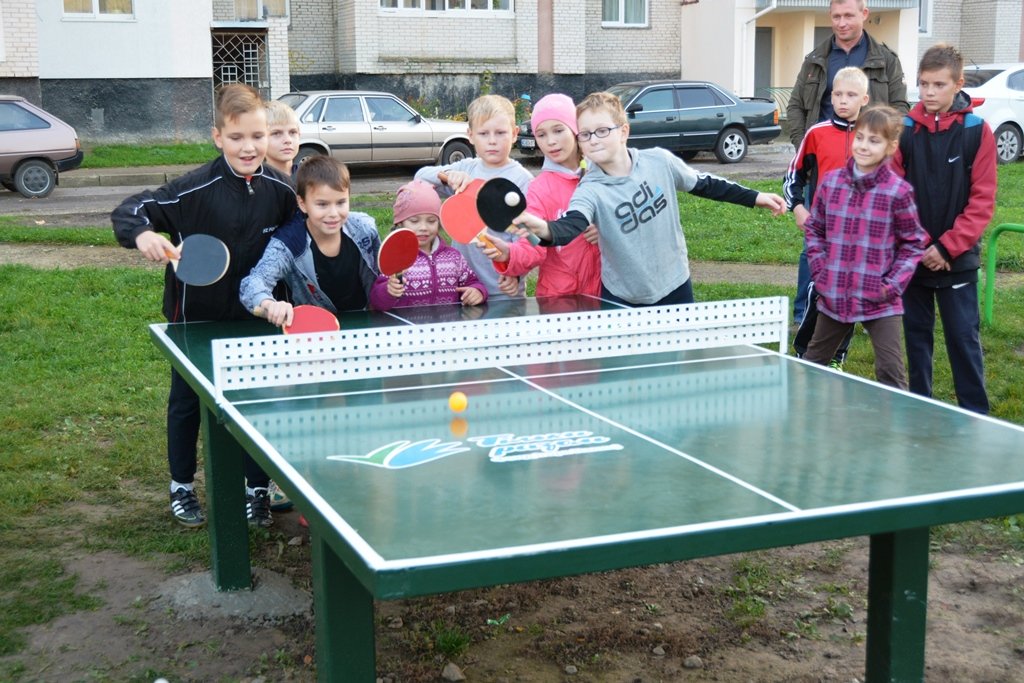 «Тенісний стіл у ваш двір» – ще один проект Фонду, реалізація якого відбулася завдяки активній роботі працівників ОРК. Улітку 2017 року на базі Офісів розвитку кварталу проведено конкурс на встановлення тенісних столів на прибудинкових територіях луцьких багатоповерхівок. Як результат – 18 таких столів буде встановлено у мікрорайонах міста.Мешканці будинку, що на Гулака-Артемовського, 13 а, вже грають у теніс