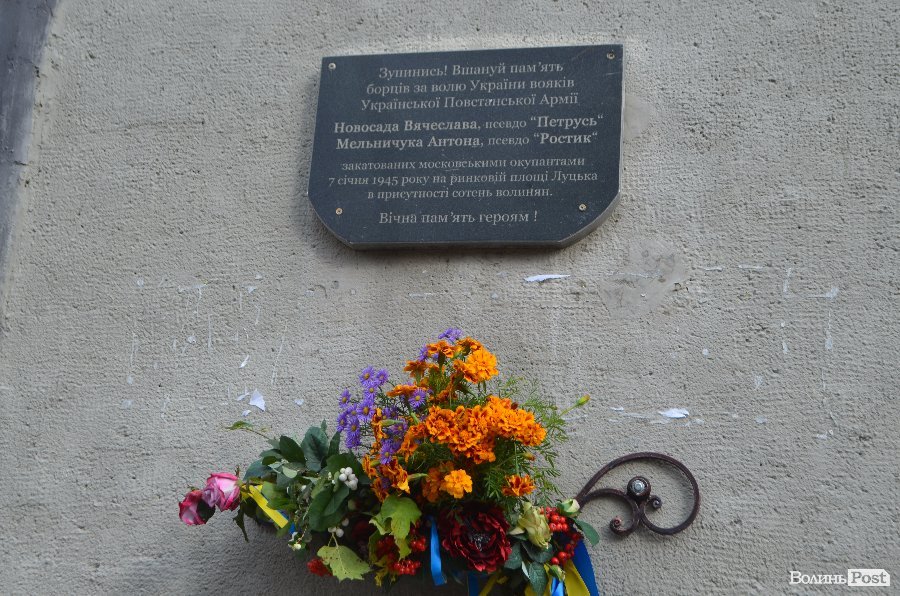 У Луцьку вшанували пам’ять двох молодих волинських упівців - Антона Мельничука (псевдо «Ростик») та В’ячеслава Новосада (псевдо «Петрусь»). У 1945-му році їх публічно стратили кати НКВС на ринковій площі.