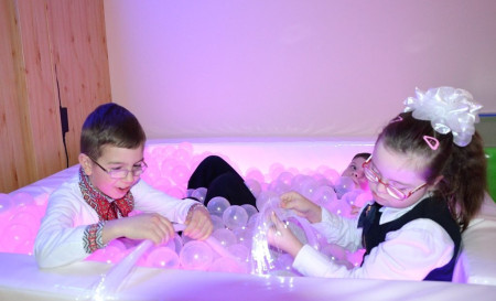 Усе сенсорне обладнання вироблено в Україні. Зокрема, це сухий басейн, наповнений пластмасовими кульками. Дітки полюбляють у ньому релаксувати. А кульки, крім масажного ефекту, створюють умови для розвитку рухів у просторі.