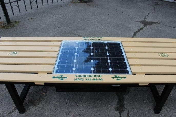 Там гартоване скло, його навіть молотком тяжко розбити. Для мене цікаво чому саме лавка і яку функцію виконуватимуть сонячні батареї у лавці?