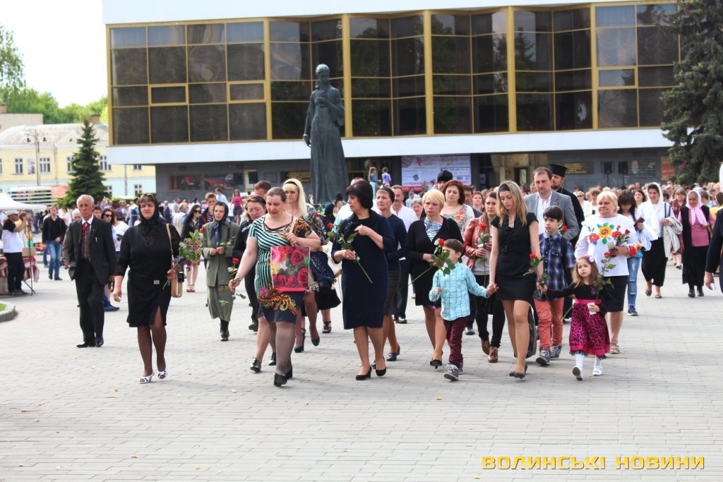Матерів, сини яких загинули під час військових дій на сході України, вшанували під час фестивалю «Вишиті обереги єднання» 10 травня у Луцьку.