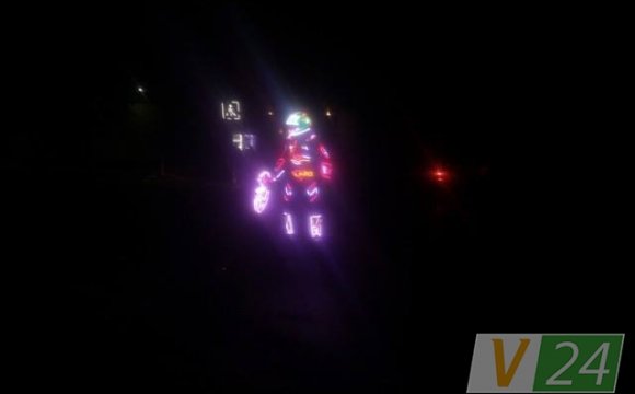 Чоловік, одягнений у світлодіодний костюм, бігав, пританцьовував та скакав на так званих джамперах.