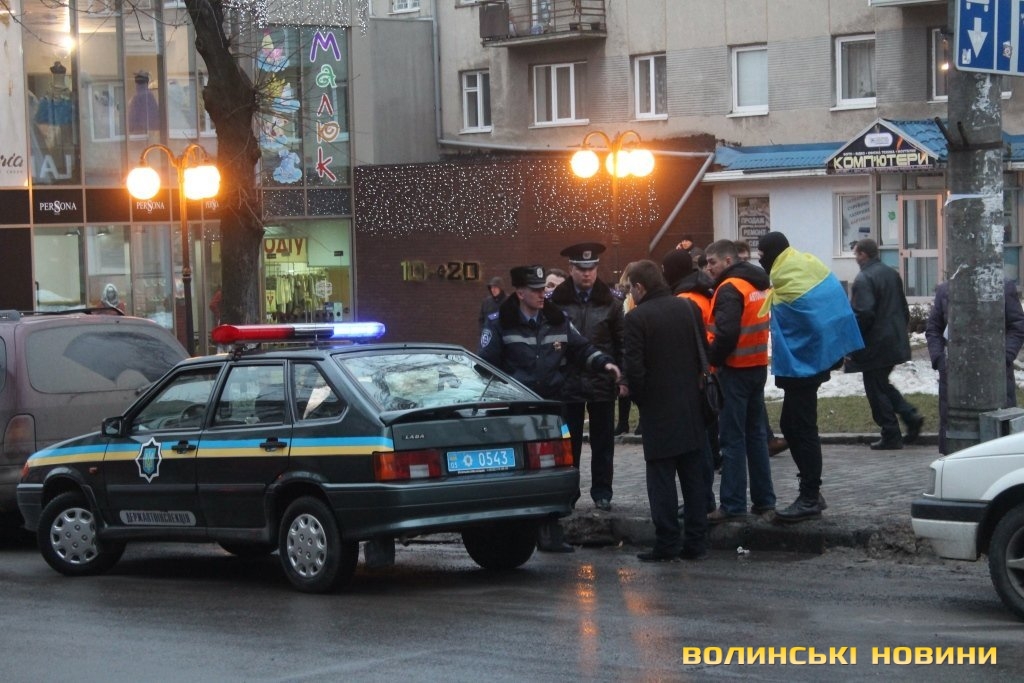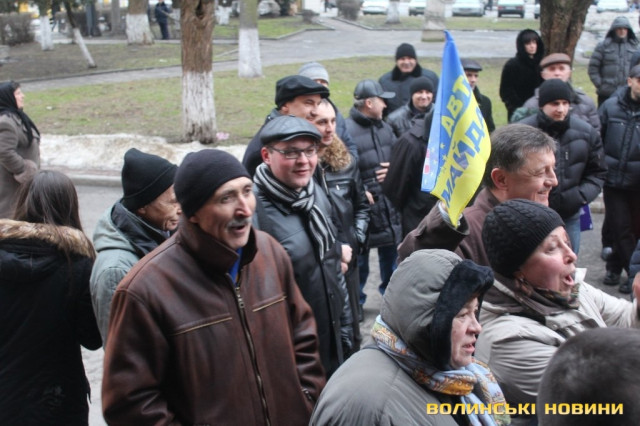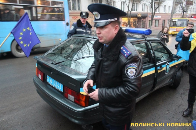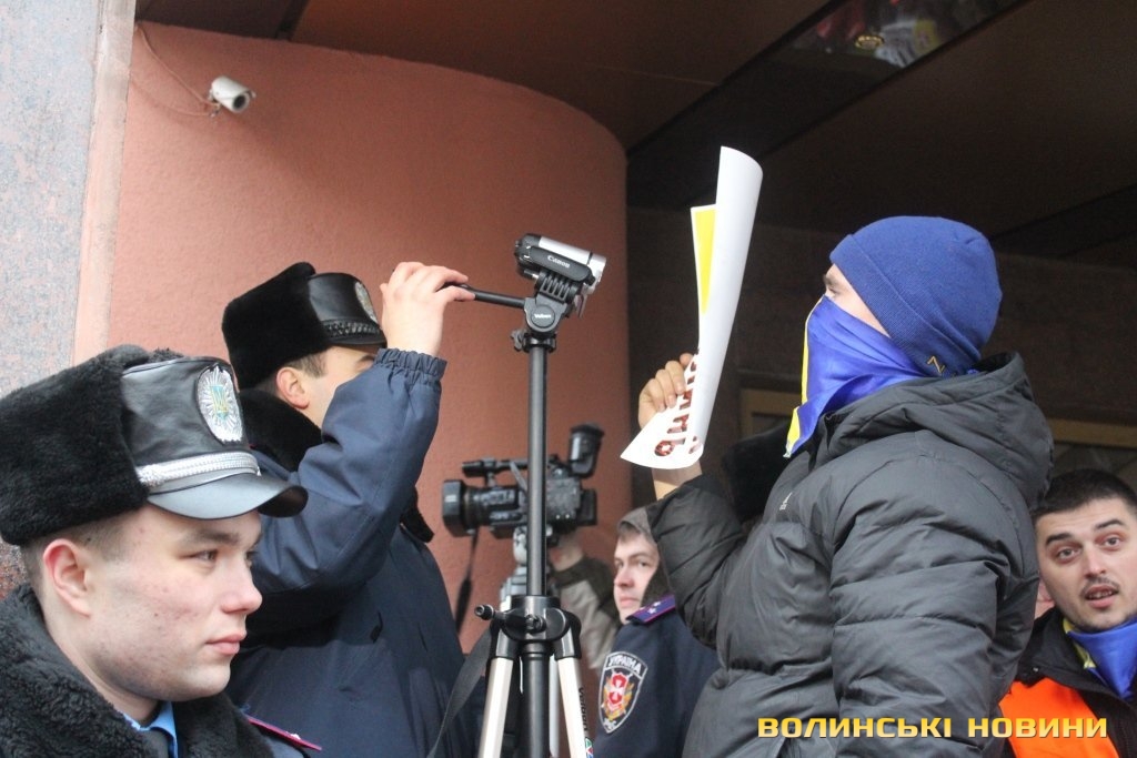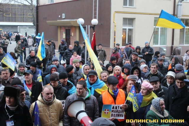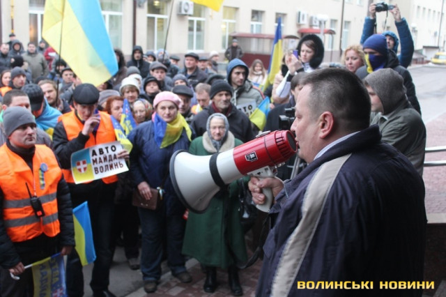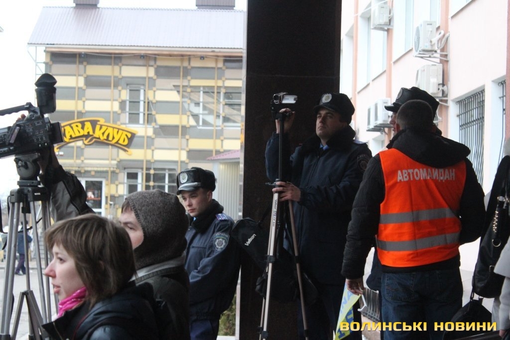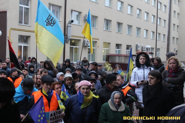 Для того, щоб висловити протест проти політичних репресій на Волині, учасники луцького автомайдану пікетували будівлю Управління МВС України у Волинській області.
