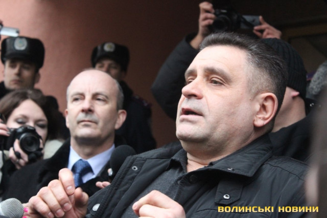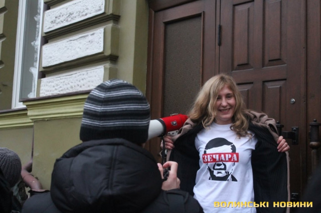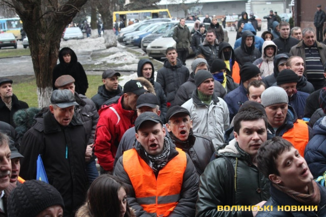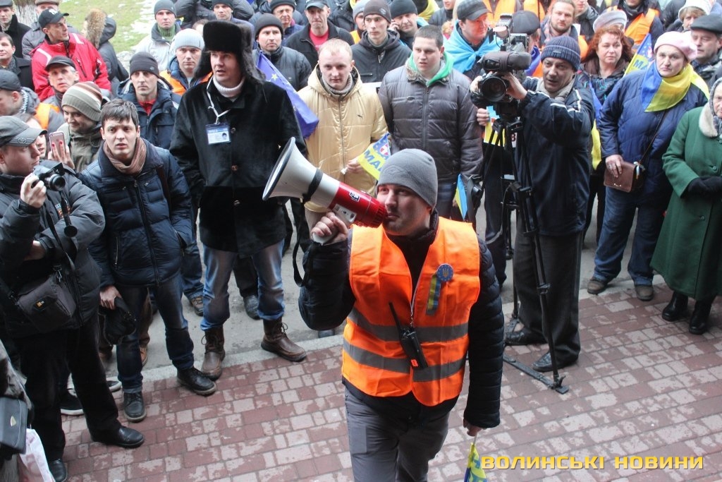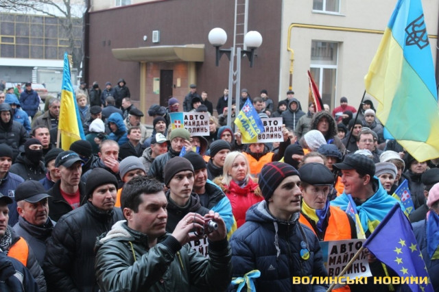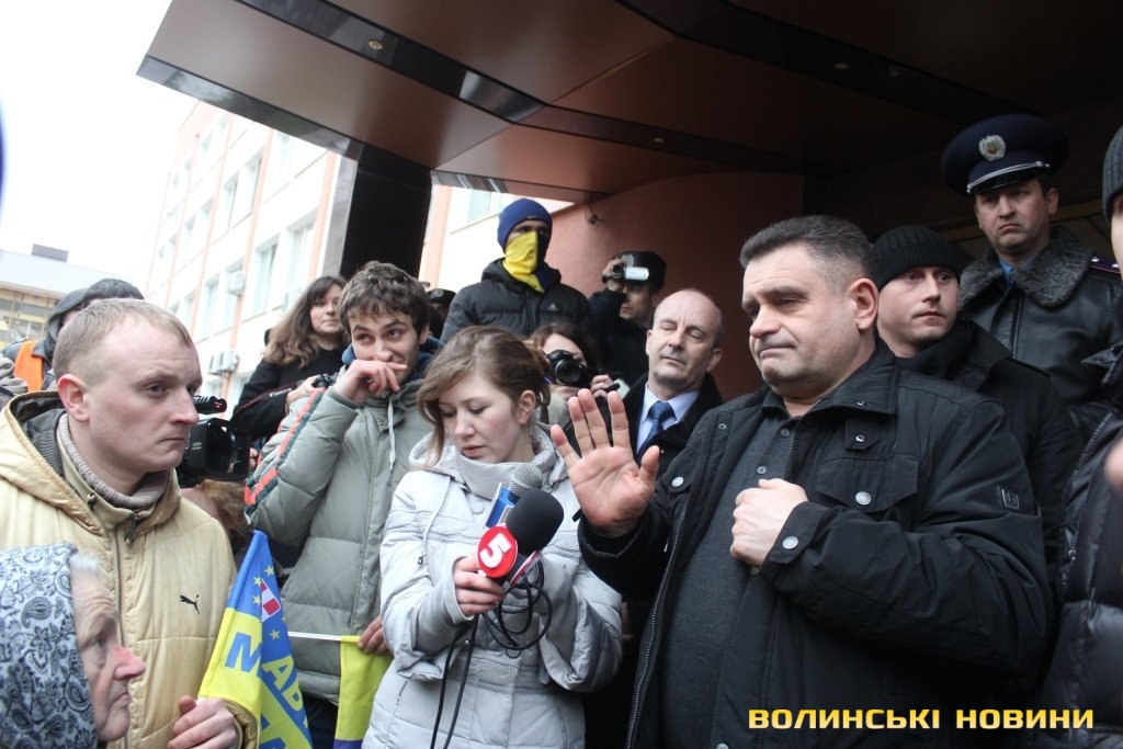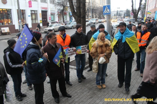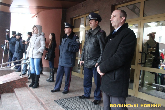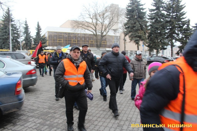 Для того, щоб висловити протест проти політичних репресій на Волині, учасники луцького автомайдану пікетували будівлю Управління МВС України у Волинській області.