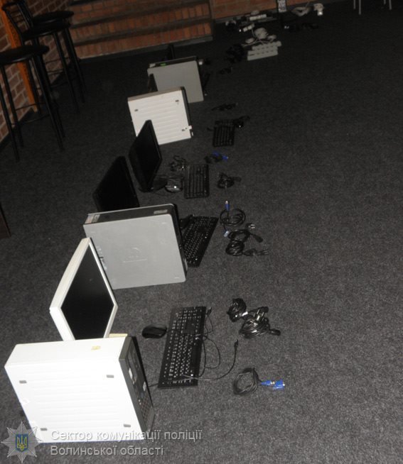 У ході обшуків правоохоронці виявили та вилучили 12 системних блоків, 12 моніторів, 10 флеш-карт, 2 платіжні термінали «PayBox», 2 апарати для друку кодів доступу до гральних серверів, Wi-Fi-роутери, комплектуючі до комп’ютерної техніки, чеки, які вказують на причетність фігурантів до незаконної діяльності у сфері грального бізнесу, а також грошові кошти у сумі 1060 грн.