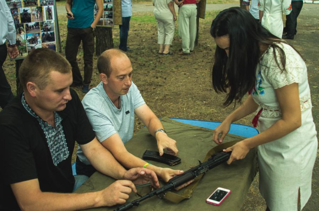 Усі охочі мали змогу нвчитися збирати, розбирати й заряджати автомат та зробити фото у військовій амуніції.