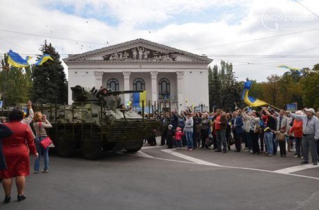 Попри стрілянину мешканці Маріуполя відсвяткували День міста. Під час святкування провели марш вишиванок та парад військової техніки, - повідомляє "Українська Правда".