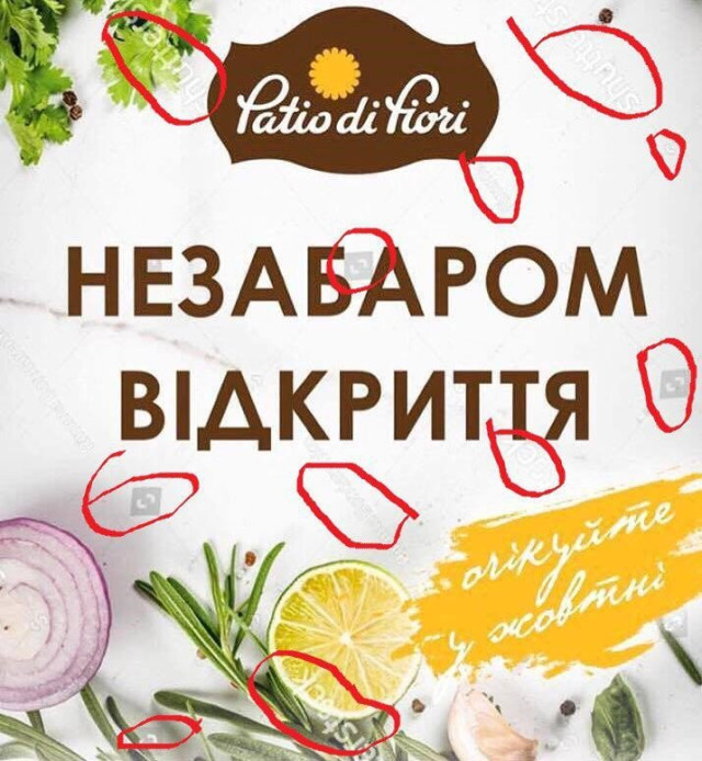 В соцмережі висміюють афішу фешенебельного луцького ресторану Patio di Fiori, який для створення афіші про відкриття закладу використав вкрадене з фотостоків зображення. Користувачі обурюються – один з найдорожчих закладів в місті вирішив «зекономити» на фото, вартість якого – близько 25-50 центів.