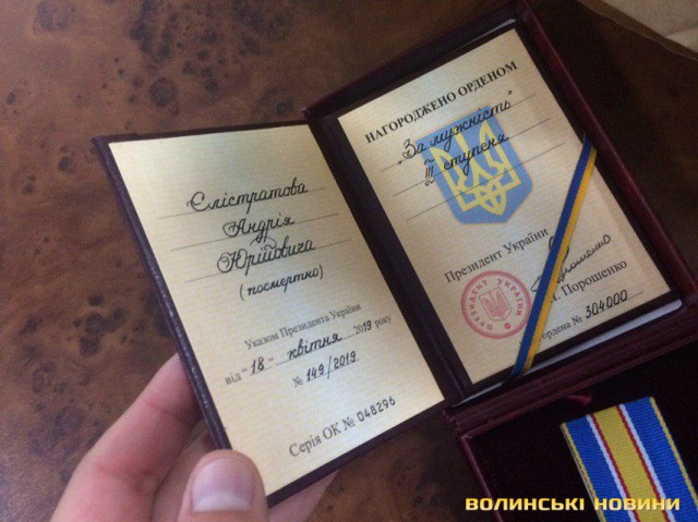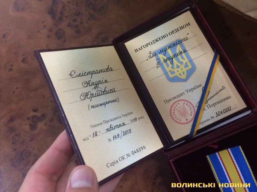 Орден «За мужність» ІІІ ступеня посмертно вручили Андрію Єлістратову в Луцькій міській раді.