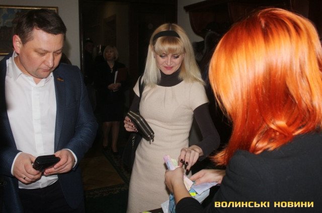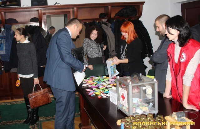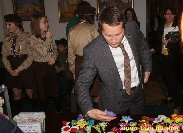 Фетрові новорічні іграшки під час акції «Тепла іграшка надії» у холі зали засідань міської ради купували не лише депутати, а й посадовці, працівники ЗМІ тощо. Зокрема, до допомоги онкохворим дітям долучилися начальник Луцького відділу поліції Головного управління Національної поліції у Волинській області Ігор Муковоз та директор Луцького зоопарку Людмила Денисенко.