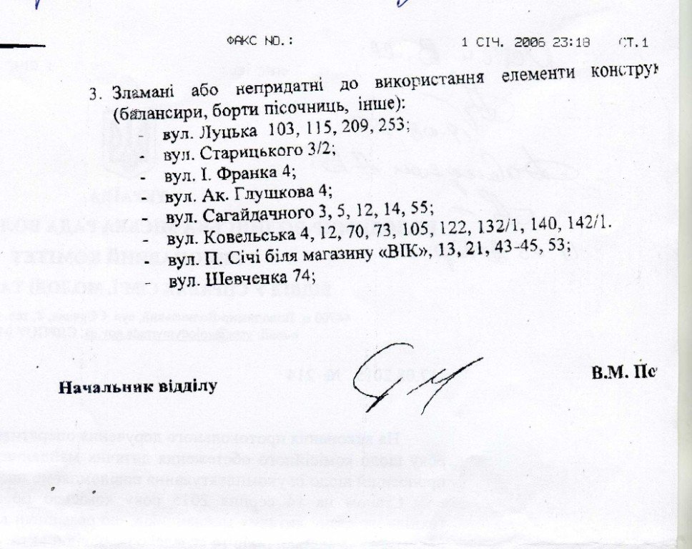Також депутат зазначає, що ще з липня не може домогтися від міської влади ремонту дитячого майданчика на вулиці Луцькій 115, який також знаходиться в аварійному стані.