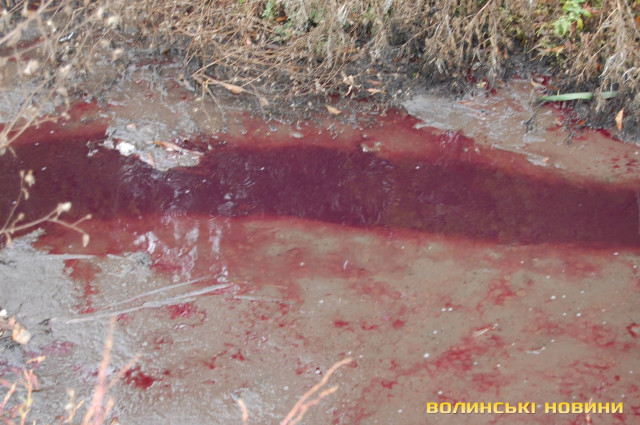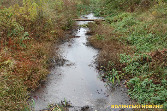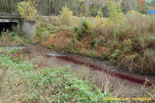 Як повідомили журналістам Інформаційного агентства Волинські Новини занепокоєні місцеві жителі, проблема зі зливом у рів нечистот існує давно, проте 11 жовтня вода у ньому стала червоного кольору, а запах – нестерпним. Місцеві мешканці стали бити на сполох.