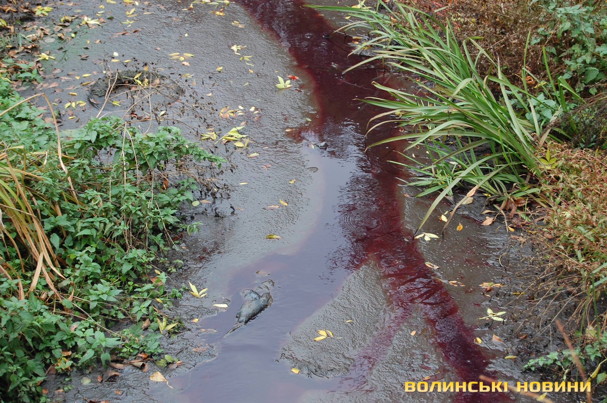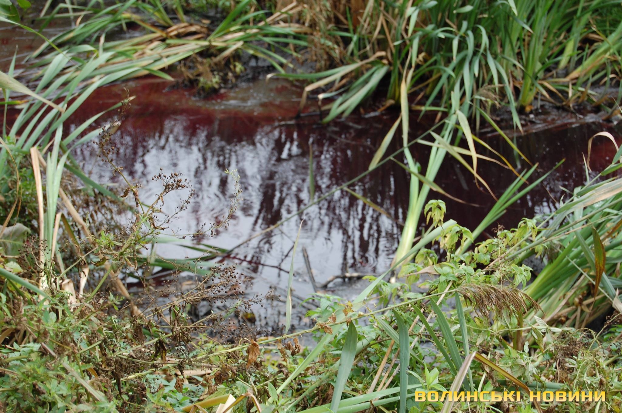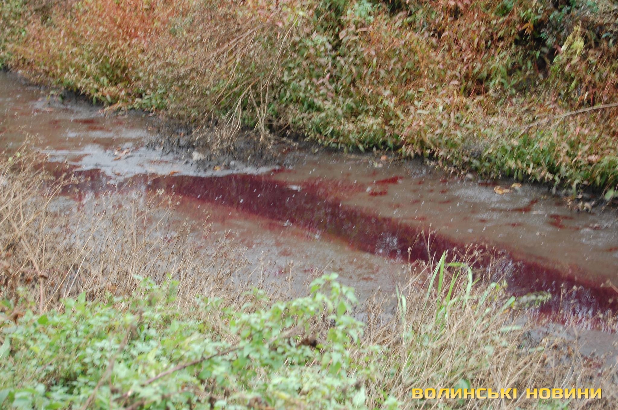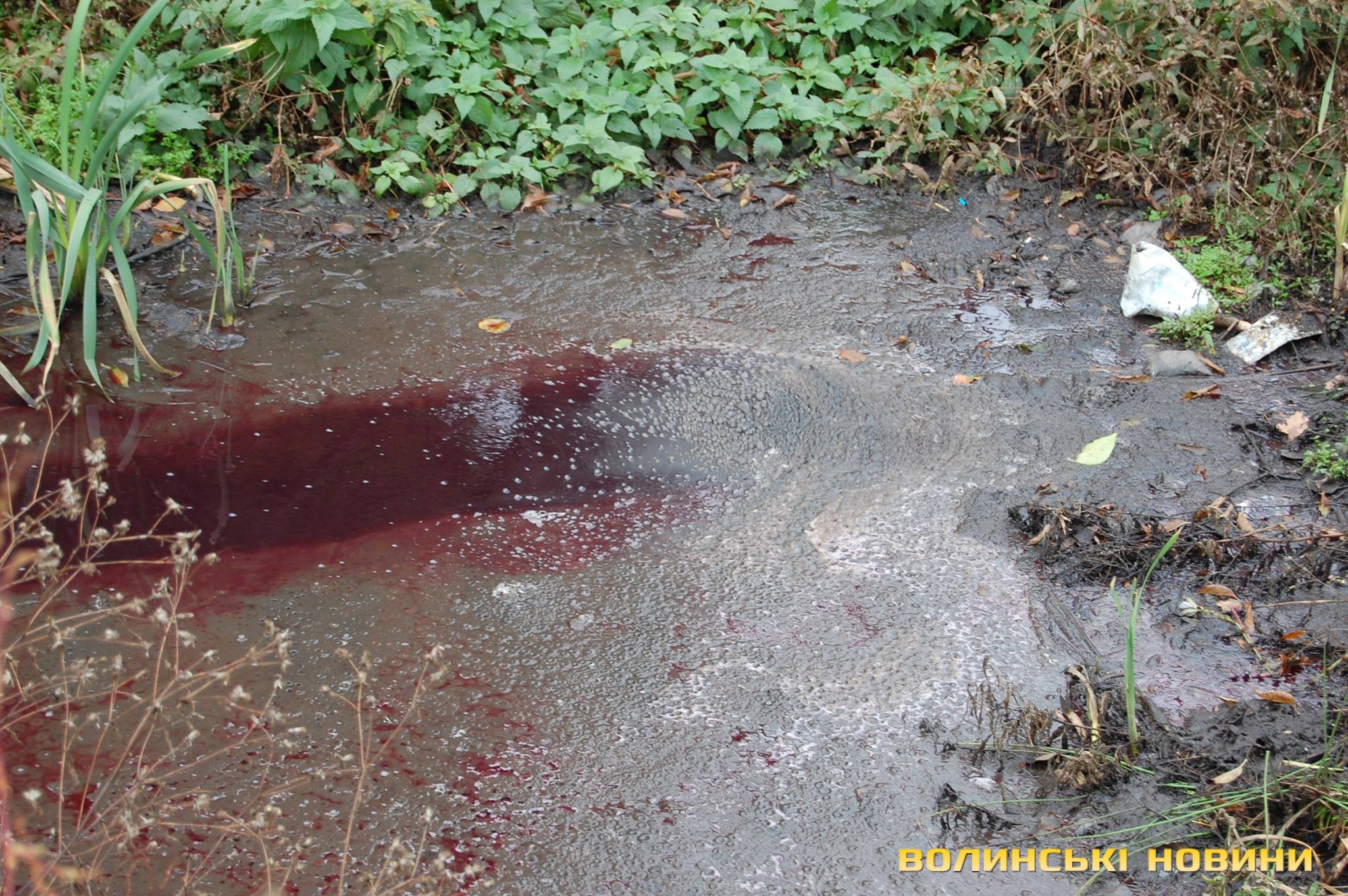 Як повідомили журналістам Інформаційного агентства Волинські Новини занепокоєні місцеві жителі, проблема зі зливом у рів нечистот існує давно, проте 11 жовтня вода у ньому стала червоного кольору, а запах – нестерпним. Місцеві мешканці стали бити на сполох.