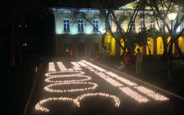 У дворі музею Гоголя на Нікітському бульварі російські активісти запалили понад 3 тисячі свічок.