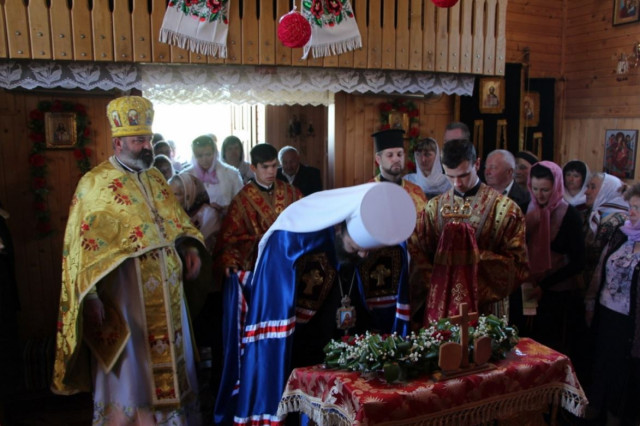 Із митрополитом служили декан протоієрей Іван Семенюк, настоятель парафії священик Михайло Казанівський, інше місцеве духовенство. У відправі взяла участь також голова сільради Євгенія Мацюк.