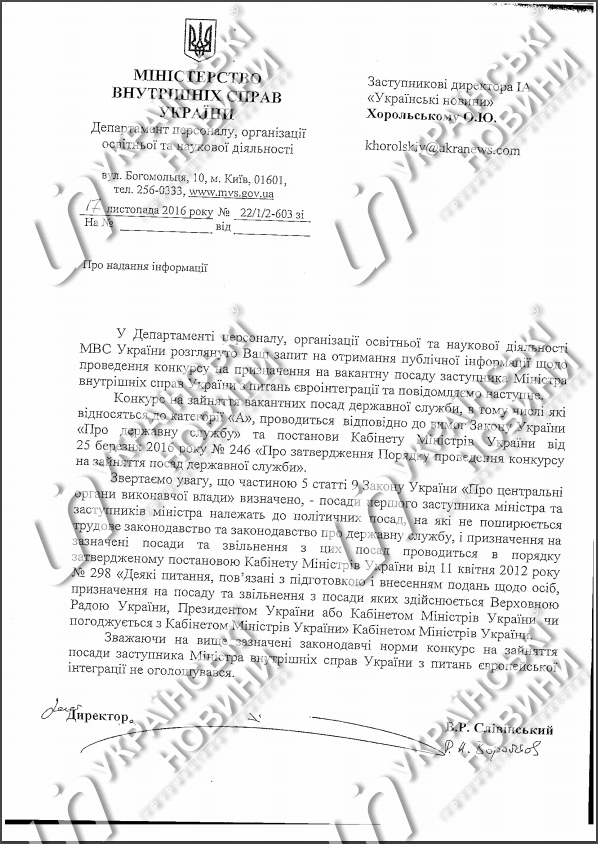 Призначаючи Анастасію Дєєву на пост заступника Міністра внутрішніх справ з питань європейської інтеграції конкурсний відбір не проводили.