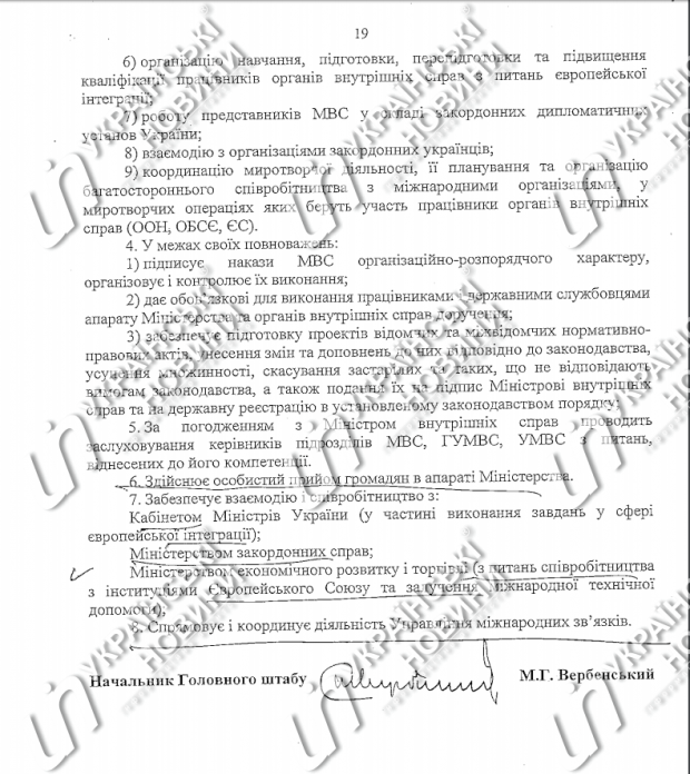 Також вона має право підписувати накази МВС, давати обов'язкові до виконання вказівки співробітникам і держслужбовцям апарату МВС, заслуховувати керівників підрозділів МВС. До її сфери віднесли і координацію дій з МЗС і Мінекономрозвитку України.